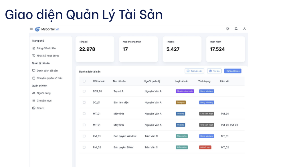Phần mềm theo dõi trọn vòng đời của 1 tài sản (mua sắm, sử dụng, chuyển giao, bảo trì đến thanh lý). Lợi ích cốt lõi là ngăn ngừa thất thoát và tự động cập nhật giá trị tài sản theo công thức khấu hao.
